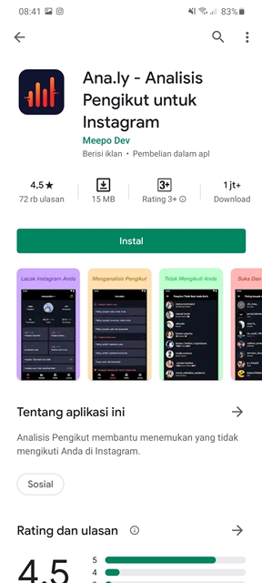 Hantu misalnya dapet rating sebanyak 41 di application store milik Android.
